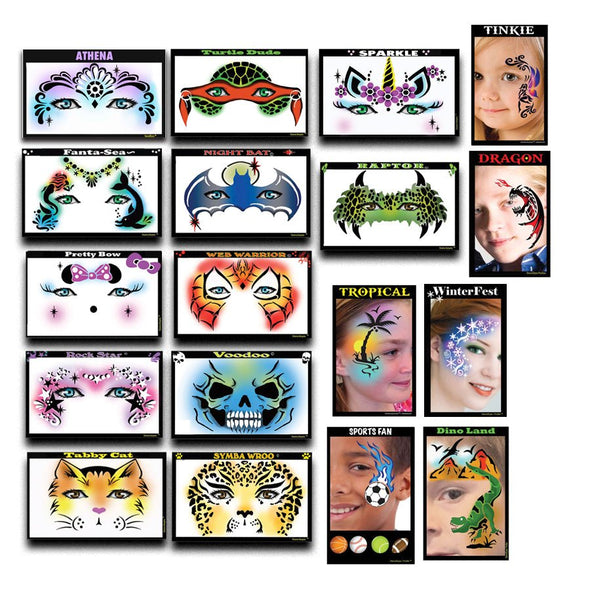 StencilEyes are heavy duty, reusable stencils that create fast and easy airbrush face painting designs! With practice, each design can usually be applied in under 2 minutes. Profile stencils are interchangeable for endless creative possibilities!
