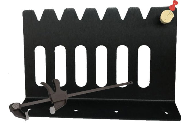 Simply drill #10 screws into your workstation or use the provided C-Clamp to secure onto table! Cork for holding push pins to clear your adapter cap holes.