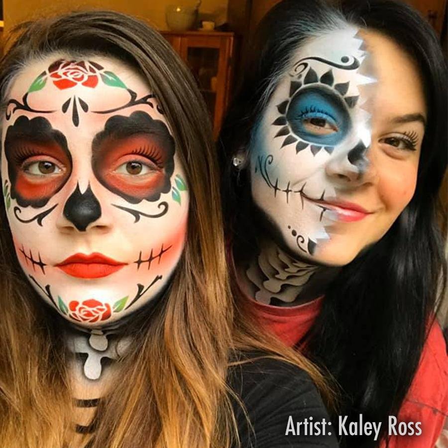 Sugar skull face painting stencils are interchangeable.